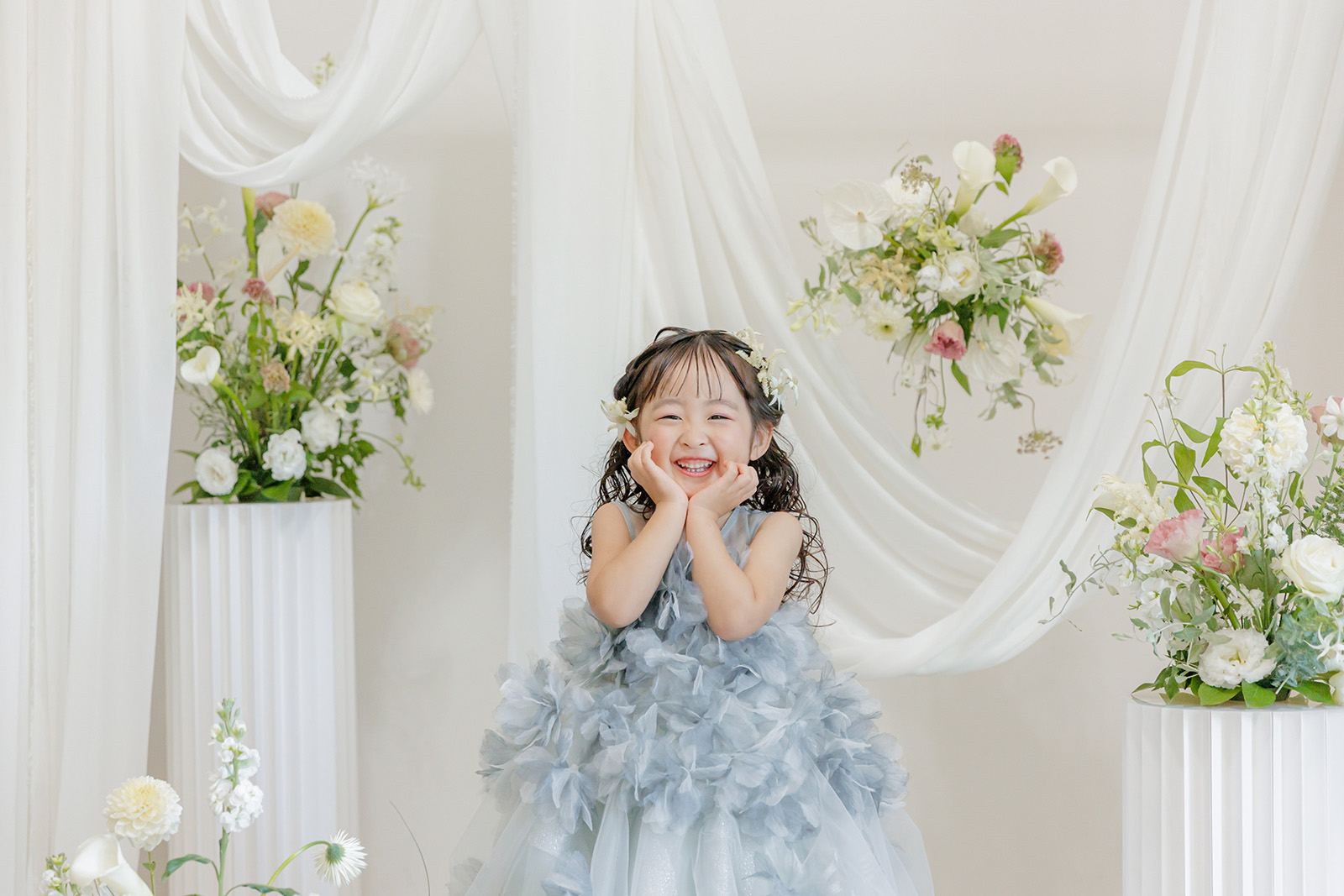 私たちが今回「生花」にこだわったのは、花が持つ圧倒的な生命力と、その瞬間にしか放たない香りが、写真に「温度」を吹き込んでくれると信じているからです。造花にはない、花びら一枚一枚の繊細な表情や色彩は、お子様の瑞々しい笑顔や、ご家族の温かな空気感と見事に共鳴します。