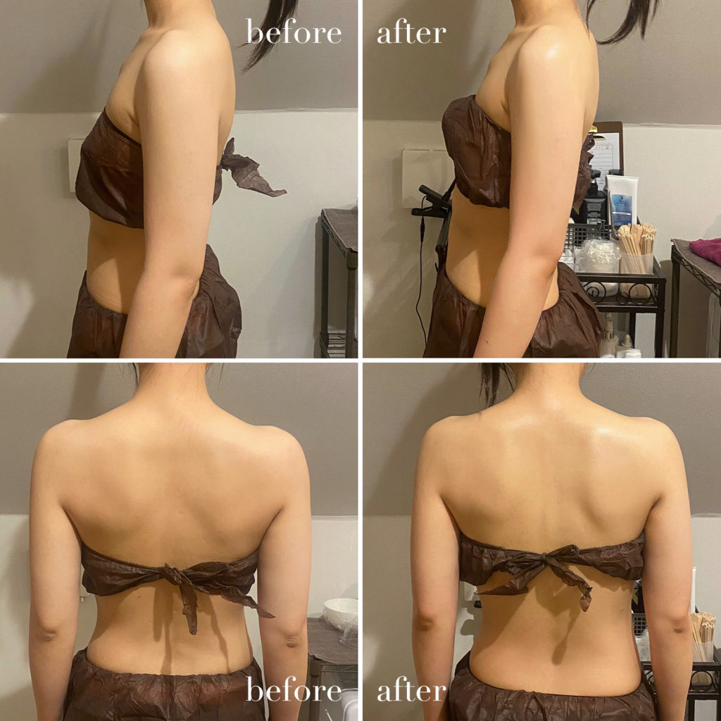 その中でも二の腕と背中を決定的に引き締めたい方に人気のメニューの組み合わせが、背中/二の腕の引き締めメニュー、キャビテーションとビオスチームの組み合わせです!