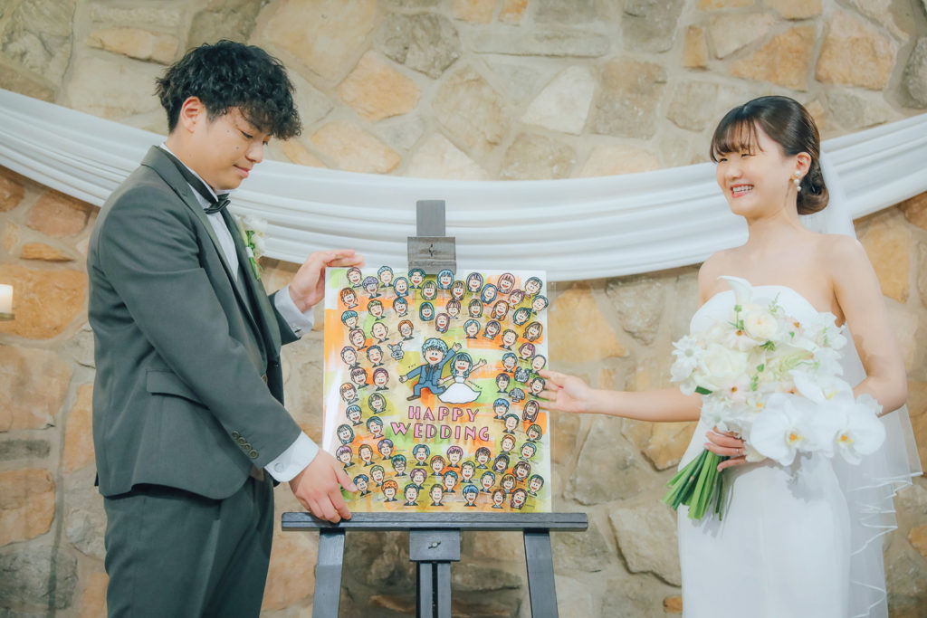 大切なゲスト一人ひとりの似顔絵を描いた、世界にひとつだけの温かい証明書。
