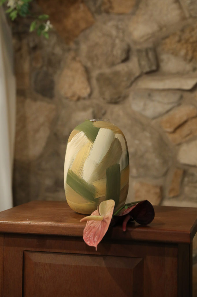 最近では、キャンバスではなくフラワーベースに色を入れ、最後におふたりでお花を活けて仕上げるのが、2025年の新トレンドです🌷