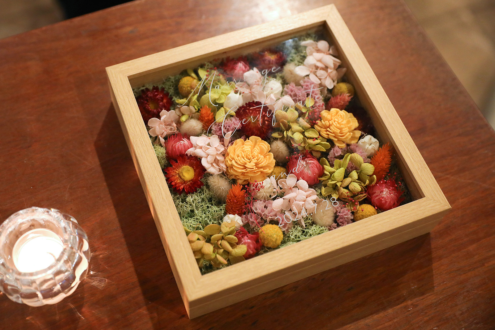 新郎新婦が選んだドライフラワーを、ゲストの皆さまに少しずつ詰めてもらいます。