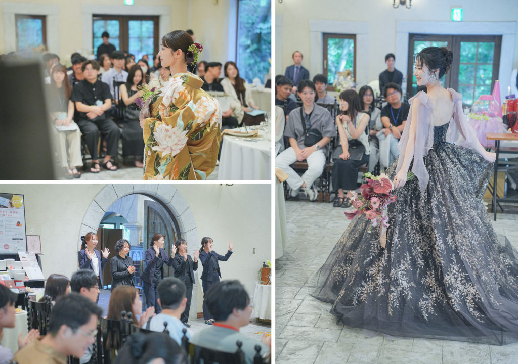 彩音の会場に映える最新のドレス&和装、全10点をショー形式でご紹介しました。