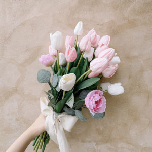 優しいピンクとホワイトのチューリップをふんわりと束ねた春婚に人気のチューリップブーケです。