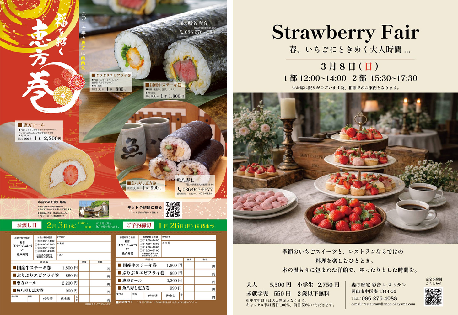 福を招く彩音の恵方巻と、いちごフェア🍓のご案内