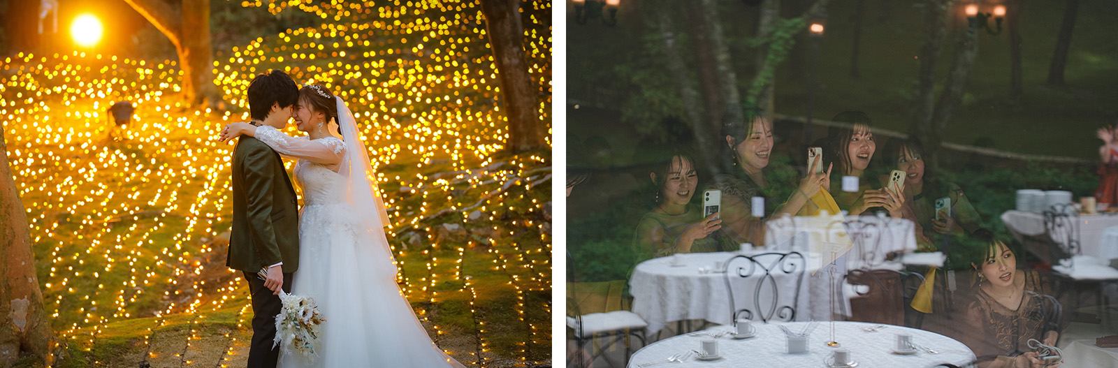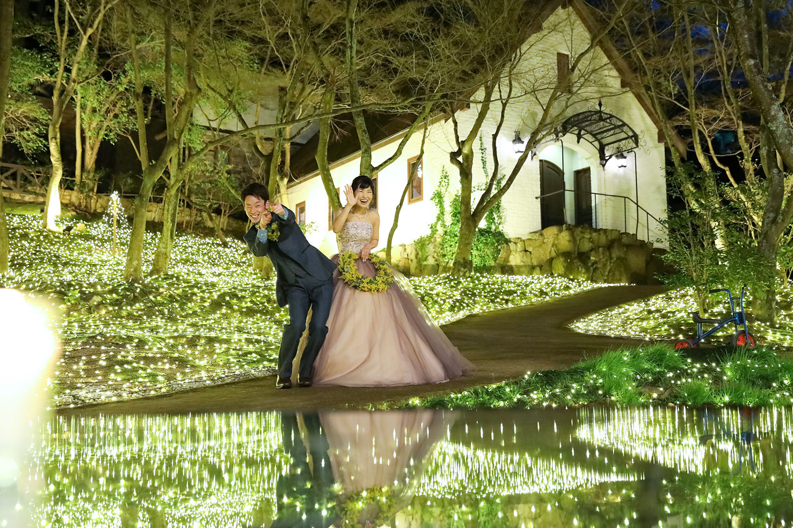 ゲストの皆様の反応を大いに期待できるのはもちろん、何よりイルミネーションをバックに登場するご新郎新婦様のお姿は、キラキラとより輝き『美しく」「かっこ良く」写真映えすること間違いなしです!