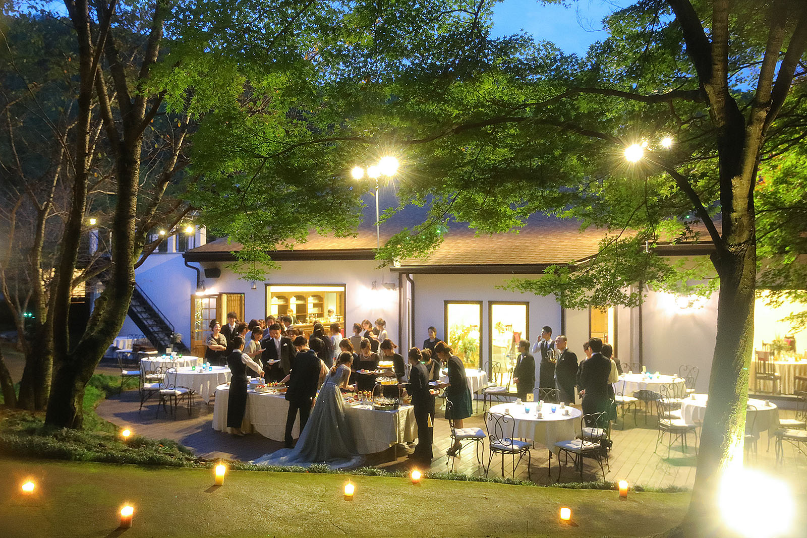 キャンドルに囲まれてのお色直し後の登場シーンが魅力的なのはもちろん、ゲストの皆様にデザートをお庭で楽しんでいただきながら、ゆっくり会話をしていただき、まったりしたお時間を過ごしていただくことができます。