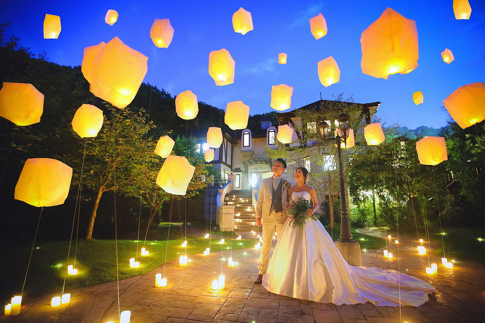 夜空に向かってゆらゆらと揺れ動くランタンの温かく優しい灯りは、会場全体を温もりと幸せムードに包み込み、映画のワンシーンのような神秘的でロマンチックな空間を演出することができます。