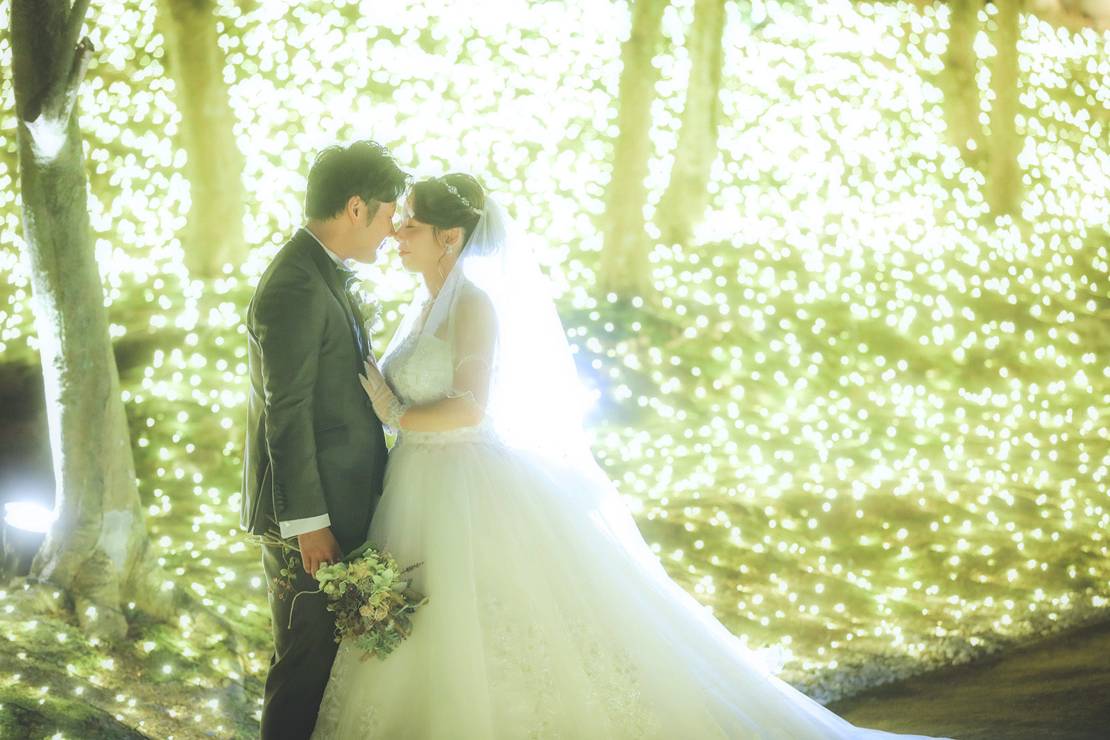 ゲストの皆様の反応を大いに期待できるのはもちろん、何よりイルミネーションをバックに登場するご新郎新婦様のお姿は、キラキラとより輝き『美しく」「かっこ良く」写真映えすること間違いなしです!