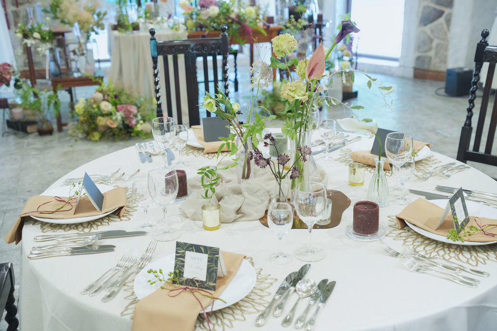 メインテーブルは会場の中心であり、写真にも多く残るため、ここで決まった雰囲気がそのまま全体の印象につながります。